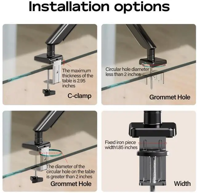 Maximum Support: Crafted from high-strength aluminum alloy, reinforced VESA head and 20% thicker arms, this single monitor arm supports up to 24.2 lbs. It has passed rigorous tests, including 100, 000 cycle motion tests and a 3X load test, so you can be confident that durability comes unmatched, and your monitor will be stable for the long term ^^ Quick 3-Step