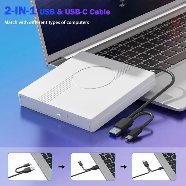 Easy Plug & Play CD/DVD Player: No additional drivers are required for this external cd/dvd drive. Simply plug it into your laptop or desktop pc, insert your cds or dvds, and let our drive do the rest. Enjoy using media player, burning, or ripping software to read, write, and rip your discs! ^^ Latest