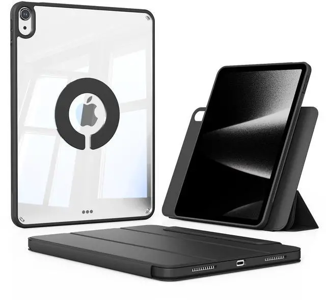 Multiple Use Modes: This iPad case consists of a premium PU leather outer shell and a transparent inner shell built-in magnets. The inner shell can be used alone, providing lightweight and excellent protection. The outer shell can be used as a stand, supporting different viewing angles and can be rotated 720, allowing you to transform your tablet into any desired position