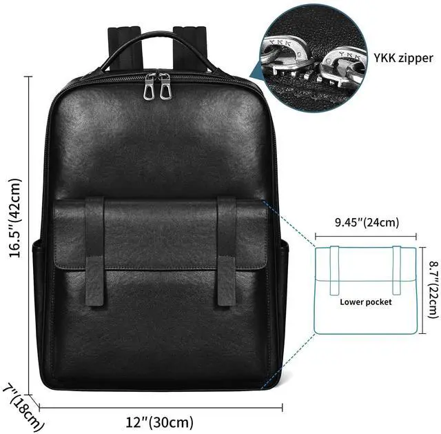 High quality top layer cowhideThe genuine leather business backpack fabric is made of high-quality imported Italian top layer cowhide, and the unique pore texture of the leather is clearly visible. The interior is made of black silk lining, which is durable and long-lasting. The hardware is Japanese YKK brand zipper. High strength nylon suture thread, neat and neat in routing. This backpack is exquisitely crafted and durable, with a normal lifespan of over 8-10 years ^^ No collapse in shape, no fatigue after a long timeThe back of the Japanese brand designer backpack is equipped with breathable shock absorbers, high elasticity EVA, pearl cotton, and hydroentangled fabric, all of which are hand bonded to make your backpack more comfortable, breathable, durable, and tactile.