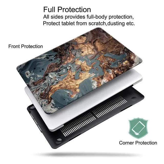 Features: Made of durable hard plastic, it protects your laptop from scratches and simple wear and tear. The silicone keyboard cover protects your keyboard from fingerprints, spills, dirt, etc. Has a cutout for the logo. Fully access to all ports, buttons, and features. Vents on the bottom piece let the device release heat, helping keep your laptop cool. Four non-slip silicone feet keep your laptop firmly in place. 2-piece, snap-on design. Snug fit, easy to put on and remove. Ultra-thin and lightweight, it won't add any noticeable weight or bulk to your laptop.