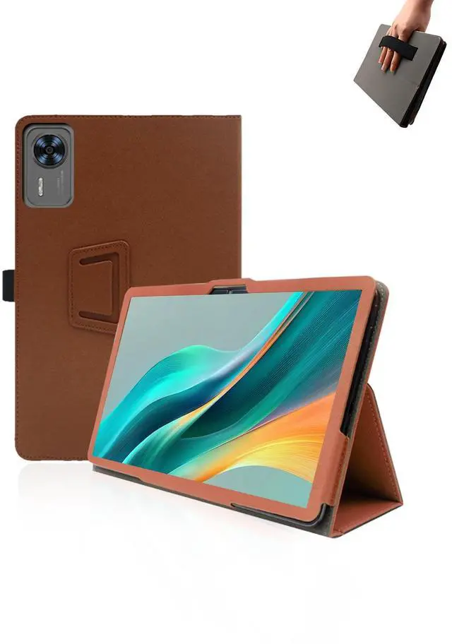 Case for DOOGEE T36 Android 15 Tablet 12 inch Tablets,12 inch Tablet,UYRUREL Leather Slim Folding Stand Cover with Hand Strap Magnet for Men Women Full Protection,Brown.