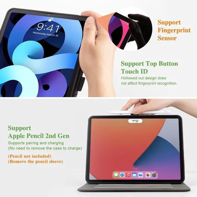 & Front Pocket: Vimorco for iPad Air 11 Inch Case, for iPad Air M3/M2 11 Inch Case 2025/2024, for iPad Air 5th/4th Generation Case, for iPad Air 10.9 Inch Case, for iPad Pro 11 Inch Case 4th/3rd/2nd/1st Generation come with Pencil holder, this design to grab or carry Pencil easily and conveniently (Pencil is NOT Included! ). The Front Pocket on the front for you to store your cards, pics and notes. ^^ Safety Screen Protection Band & Internal Hand Strap-- Safety