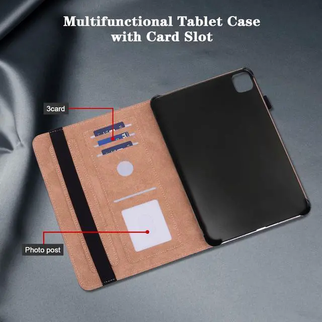 Release (Model: A3360 A3361 A3362 A2925 A2926 A3007) Tablet Only. Not fit for other device. ^^ Precise OpeningsClassic and professional design, solid construction; all the cutouts are correctly spaced to access charging and on/off. ^^ Folding FunctionWith the folding function, you can flexible to actually hold up tablet enabling you to read. ^^ Wallet CoverBook-style case built-in 4 card slots for ID, SD card, credit cards etc. Slim and Lightweight Cover, perfect for business or travel. ^^ Stable performanceThe closure strap can hold the tablet to ensure the stability of the tablet support. Built-in elastic stylus pen loop, convenient for keeping your stylus pen at hand.