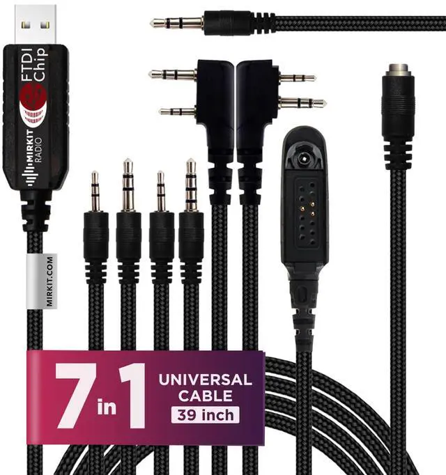 Bonus: lanyard for your ham radio and Channel-list for free! (Channel-list by request) ^^ 100% plug & play function! Part from Baofeng accessories! The most useful FTDI USB radio programming cable accessory - goes with 7 different connector types that fits to all analogue ham radios! ^^ MAC & Windows 100% Compatible! A special programming software + firmware MIRKIT-channelist will be provided on request for FREE! ^^ Multiple use for different brands two-way radios! Package includes 7pcs different adapters for universal use: Baofeng Radio, Wouxun, Kenwood, UV-9R Plus, UV-5R and many more!! NOT COMPATIBLE with Motorola XPR, XiR, DP/DGP, APX, etc. ^^ Be different from everyone with special MIRKIT braded design Baofeng programming cable for flashing analogue ham radios!