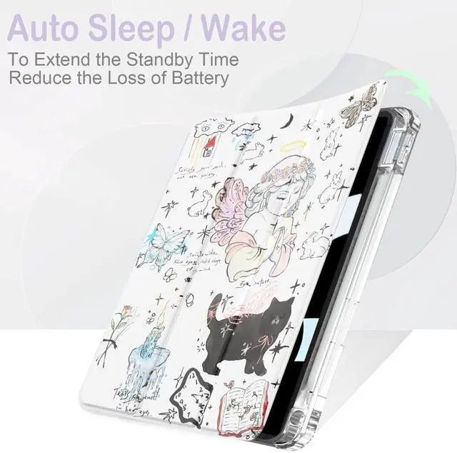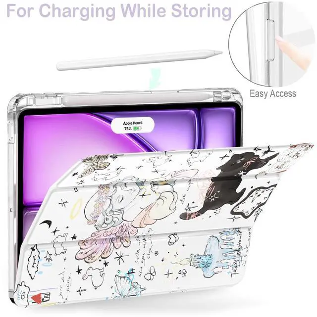 Feams for iPad Air 13 Inch Case M3 2025/M2 2024, Slim iPad Pro 12.9 Inch 6th/5th/4th Generation 2022/2021/2020 Case Clear Back Cover with Auto Sleep & Pencil Holder, Angel