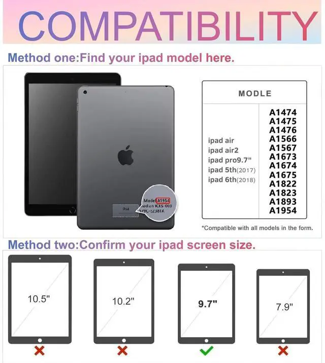 Air(Model: A1474/A1475/A1476), iPad Air 2 (A1566 /A1567), and iPad