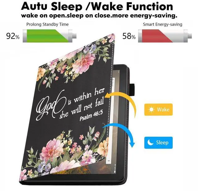 Product Features: Made of High end PU leather, features shockproof, protective smooth outer casing and sturdy exterior with soft microfiber interior keeps your tablet screen safe. HD 10 (13th/11th Gen) tablet case with HD print in colorful pattern of various style, Durable to use and no fade, Perfectly decor your tablet, Beauty and function come together. Viewing angle frees your hands from other activities and avoids any joint pain, and enables you to type or watch videos comfortably. Provides auto sleep/wake function with built-in magnetic strips. Smart automatically wakes or puts your device to sleep when the lid is opened and closed. Designed with 4 delicate card slots inside for you to carry your necessary cards. There is a flexible pencil holder at the edge of the shell for keeping your stylus in place (Stylus is not included). Precise cutouts design makes all ports, buttons, cameras and microphones be accessible easily without removing the case.