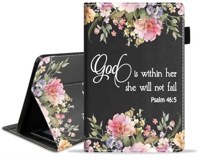 POIUYTREW Case for Kindle Fire HD 10 & 10 Plus Tablet 10.1" (13th/11th Generation, 2023/2021 Release) - PU Leather Folio Cover with Smart Auto Wake/Sleep, Floral Quote Bible Verse Psalm 46:5