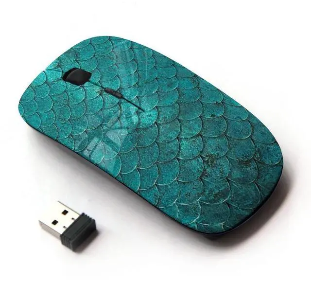 KawaiiMouse [ Optical 2.4G Wireless Mouse ] Teal Iridescent Scale Pattern Fish Tropical