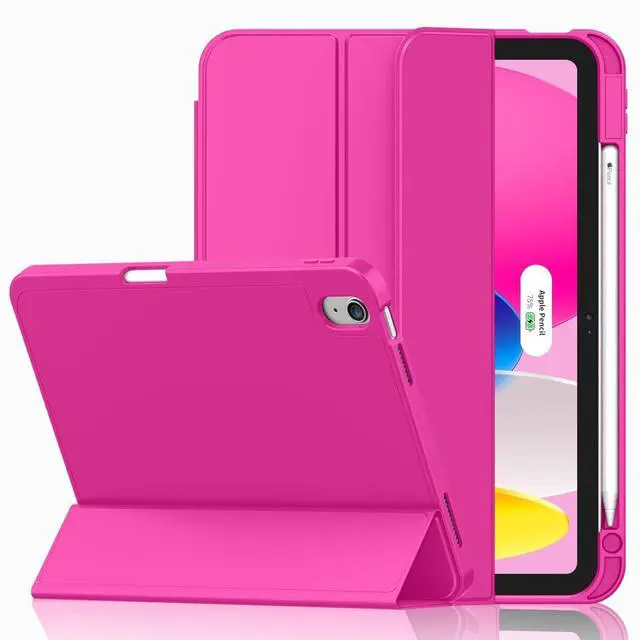 iMieet Case for iPad (A16)/iPad 10th Generation [11-Inch 2025/10.9 Inch 2022], Trifold Stand Smart Cover with Pencil Holder and Soft TPU Back, Supports Touch ID(Rose Red)