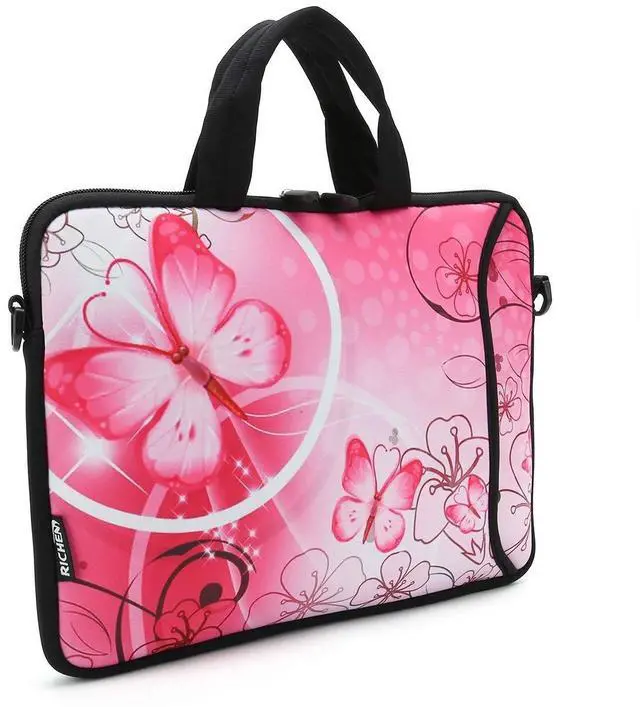 RICHEN 11 11.6 12 12.5 13 inches Laptop/Chromebook/Notebook Bag Tablet Case Neoprene Handle Sleeve with Shoulder Strap (11-13.3 inch, Pink Butterfly)