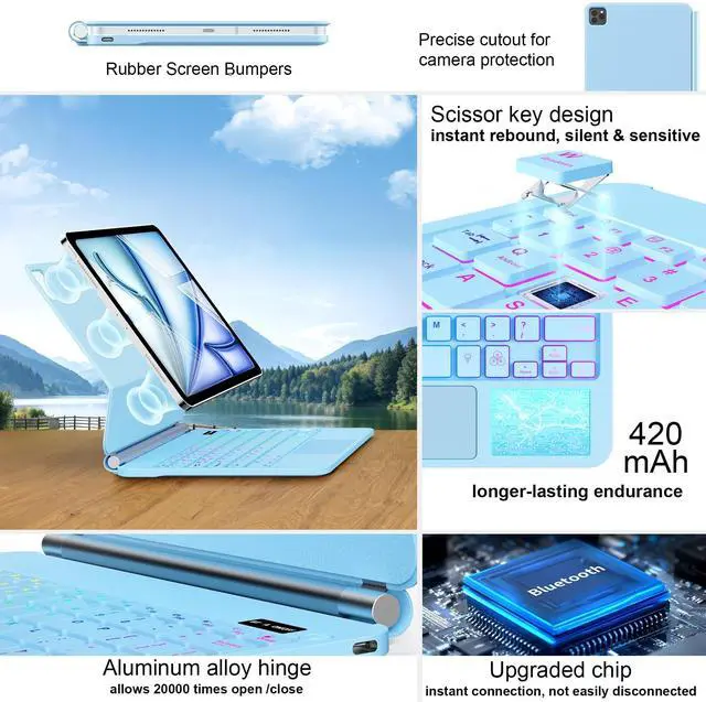 Air 11-inch (M2): A2902, A2903, A2904, 2022 iPad Pro 11-inch 4th Generation (A2435, A2759, A2761, A2762), 2021 iPad Pro 11-inch 3rd Generation (A2377, A2301, A2459, A2460), 2020 iPad Pro 11-inch 2nd Generation (A2228, A2068, A2230, A2231), 2018 iPad Pro 11-inch 1st Generation (A1980, A2013, A1934, A1979), ^^ 7-Color Backlit Keyboard Case for iPad 11th/10th GenFrom dawn to dusk, adapt effortlessly! Adjusting 7 backlight and 3 levels of brightness ensures clear visuals in every setting, enhancing your immersive experience.