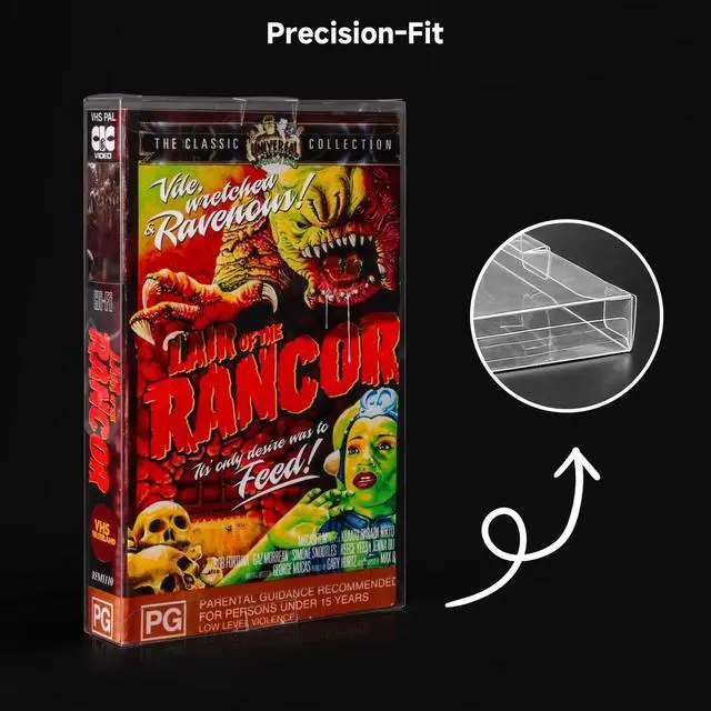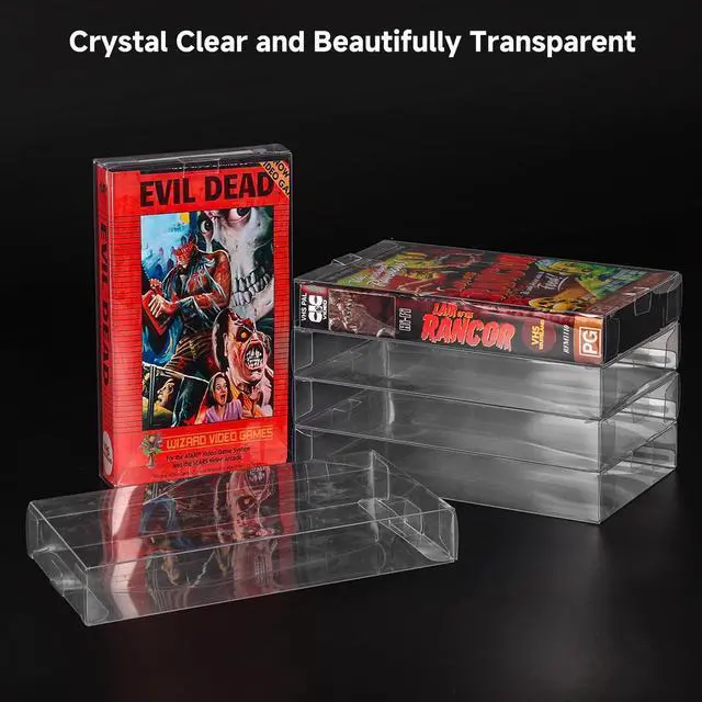 Unmatched Protection for Your VHS CollectionSafeguard your cherished VHS tapes with our premium protective cases. Made from tough, high-quality PET material with a robust 0.35 mm thickness, these cases provide maximum reliability, protecting your tapes from dust, scratches, and daily wear. ^^ Crystal Clear Display for CollectorsShowcase your VHS tapes with pristine clarity. The transparent, scratch-resistant design ensures your collections artwork shines vividly while adding a professional touch to your storage and display. ^^ Stackable & Space-Saving DesignDesigned for efficient organization, these VHS tape cases feature stackable functionality, optimizing your storage space while maintaining a sleek and clean aesthetic in your media area.