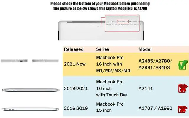 Only Compatible with MacBook Pro 16-inch M4 M3 M2 M1 Pro/Max (2024 2023 2022 2021 Late Release) Model A2485 A2780 A2991 A3403. Please double check your MacBook's model number "A1xxx" on the bottom of the laptop to determine the compatibility. ^^ Not compatible with MacBook other model, Such as MacBook Pro 16-inch Model A2141 2019/2020/2021 Version. If you look for other model Case, Please click "se7enline" below the title ^^ Premium Quality Matte Finish Hard Shell Plastic Case for Silky-smooth soft-touch protect your MacBook against shock, scratch, dusty and other damage ^^ Easy to put on and take off and Plug your charger, cable or headset without removing the protective case.
