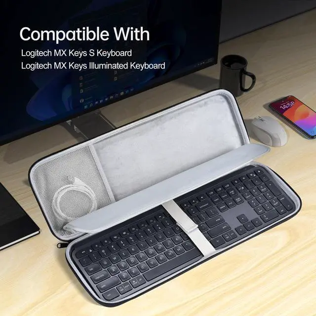 COMPATIBILITYThe hard carrying traveling case replacement for MX Keys S Wireless Keyboard / MX Keys Illuminated Wireless Keyboard. [ NOT fit for MX Mechanical / MX Keys Mini Keyboard]. Please check the model before buying. ^^ SUPER HIGH-QUALITY MATERIALSThe MX keys hard wireless keyboard protective case is made of Nylon and sturdy hard EVA, super quality lining to protect your mx keyboard and mouse from shock, scratches, drops, bumps, splash, and dust etc outside harm. ^^ TSA FRIENDLY DESIGNThe mx keys s keyboard and mouse Carrying Case play as the storage role when traveling or go out, ensure a secure & long-lasting usage everyday.