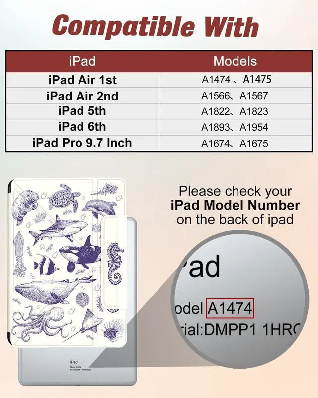Compatible Model: Only for iPad 9.7 inch 6th/5th Generation 2018 2017, for iPad Air 1/2/Pro 9.7", not compatible with other devices, please check your model before ordering ^^