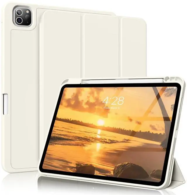 Zktuyu for iPad Pro 12.9 Case (6th/5th/4th/3rd Generation 2022/2021/2020) & ipad Air 13 inch case (M3 2025/M2 2024) with Pencil Holder, Smart Slim Trifold Stand Case with Soft TPU Back (Cream White)