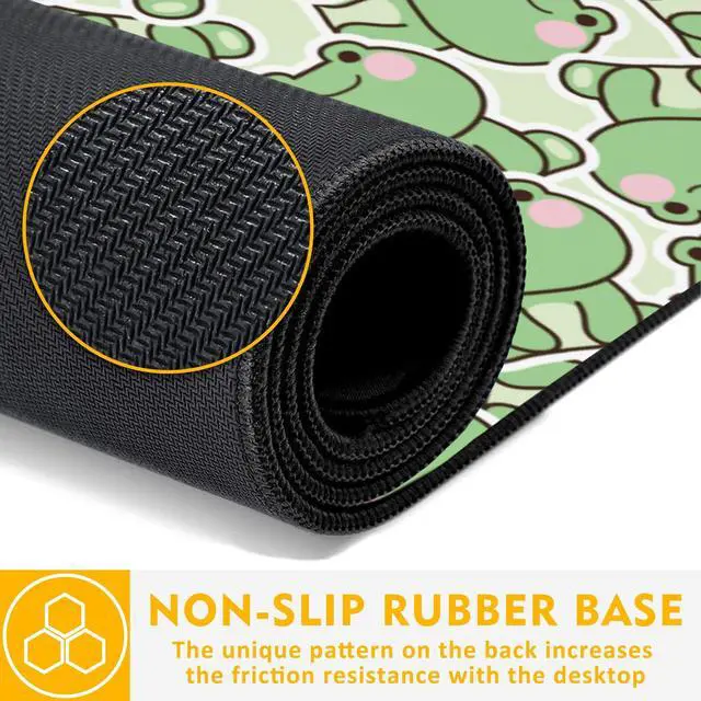 Easy cleaning and maintenance. ^^ Durable Stitched EdgesThe edge locking design tackles common issues like desk mat edge wear, deformation, and de-gluing, ensuring a more substantial and durable product. Roll it up, toss it in your bag no worries about warping. The cutting-edge stitching technology guarantees that the mouse pad won't wear out or deform during use. The stitched frame adds an extra layer of durability, preventing it from wearing out or coming apart like other mouse pads. ^^ Non-slip Rubber BaseThe soft and flexible non-slip rubber bottom provides increased friction resistance, keeping the desk pad securely in place on your desktop.