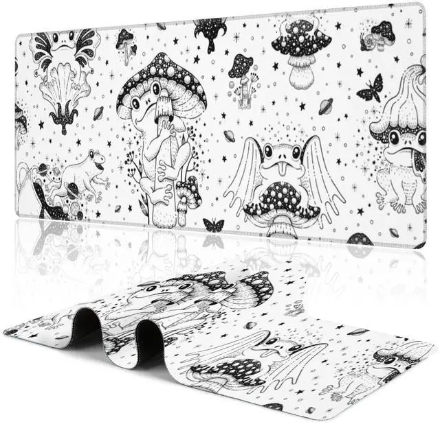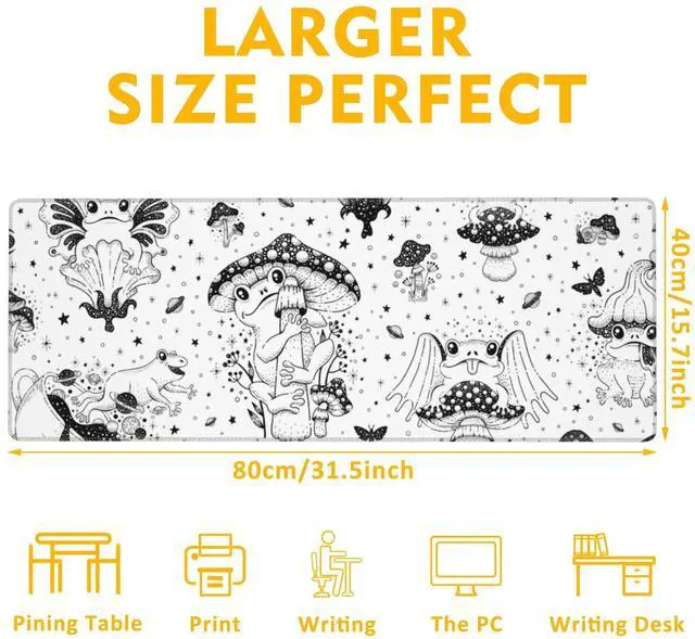 Uiaoiais Cute Frog Mushroom Gaming Mouse Pad,Kawaii Desk Mat,31.5"X15.7" Large Desk Pad with Stitched Edge Non-Slip Base Keyboard Big Mouse Pad for Office Home Work Gaming