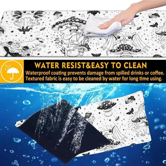 Size DesignThis mouse pad measures 31.5 x 15.7 inch. Moderate thickness and spacious surface can reduce the pressure on your hands and provide a comfortable typing experience. Accommodate your gaming mouse, full-size mechanical keyboard, and other desktop essentials effortlessly, maintaining a tidy and organized desk while enhancing your overall work efficiency. ^^ Soft MaterialThis Large gaming mouse pad is made of high quality cloth material, optimized for fast moving while maintaining excellent speed and control during gaming, let you keep operate wonderfully. and the waterproof surface prevents damage from spilled drinks or other accidents.