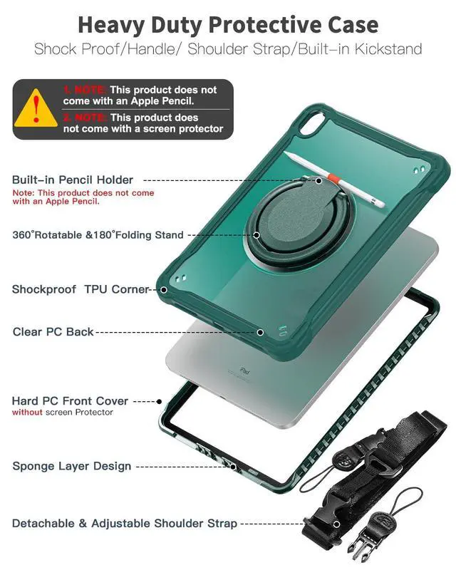 Portable Shoulder Strap: This ipad case 11/10th generation, with Original 360 rotation ring kickstand, can be 180 folded, can support you to hold, hanging, Stand, multi-angle all-round use of your ipad. Multi-functional shoulder strap allows you to carry your iPad during outdoor activities or traveling. ^^ Lightweight Design, Military
