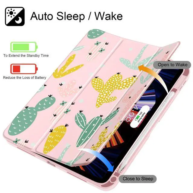 Lepeoac Case for iPad 11 inch A16 2025 Generation 11th / iPad 10.9 inch 2022 10th Gen, Buit in Pencil Holder with Shockproof Cover Clear Transparent Back Shell Auto Wake/Sleep, Cute Cacti-Pink