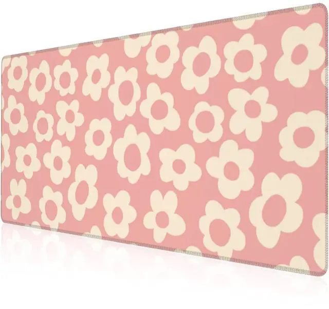 Mouse Pad, Large Pink Groovy Flowers Desk Mat, Extended Non-Slip Gaming Keyboard Mousepad Desk Pad, Thick Stitched Edges Waterproof Mouse Mat 31.5"x15.7" (Vintage Floral)