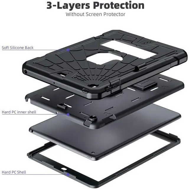 • 3-Layer Shockproof Rugged Design: This rugged protective shockproof silicone 9.7 inch iPad case has an elegant design made from unique material and texture. It's heavy-duty enough to withstand a five-feet drop