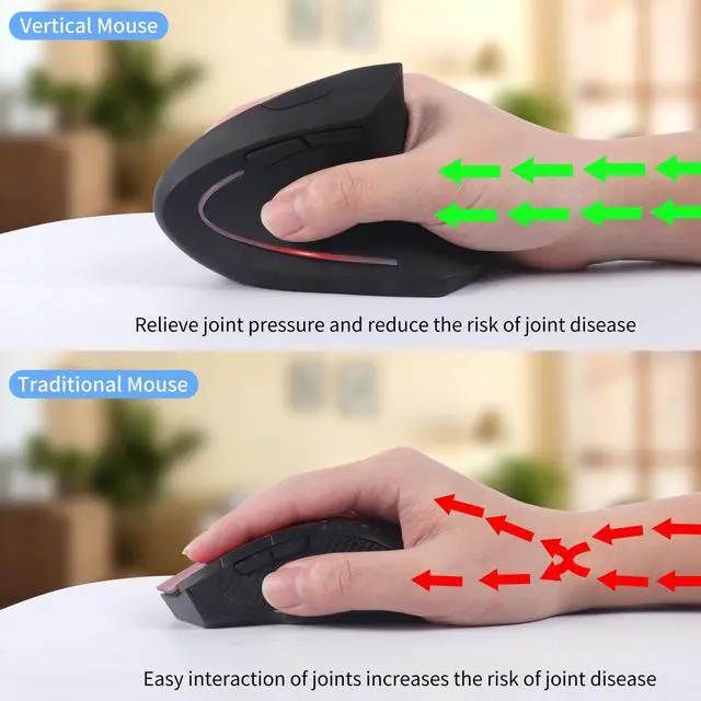 ^^ Stable Wireless Connection: The ergonomic mouse adopts advanced 2.4 GHz wireless technology, ensuring stable and quick performance within a 10m distance without interference. This cordless vertical ergonomic wireless mouse supports plug-and-play, so connect the included USB & TYPE-C receiver to the port of your computer, no additional driver is needed.