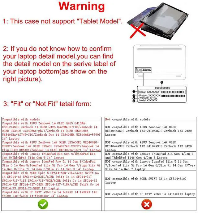 Warning: NOT FIT Lenovo ThinkPad E14 Gen 4/Gen 3 and ThinkPad T14s Gen 4/Gen 3 and NOT FIT Lenovo IdeaPad Slim 5 14 Gen 7/IdeaPad Slim 5i Pro 14 Gen 6 and NOT FIT Lenovo Slim 7i 14 Gen 7/Yoga Slim 6i 14 Gen 7 and NOT FIT Elite x360 1040 G10/EliteBook x360 1040 G9 G8 G7 G6/EliteBook 1040 G10 G9 G8 G7 G6 and NOT FIT HP ENVY x360 14 14-esXXXX and NOT FIT ASUS Zenbook 14X Q410/ASUS Zenbook 14X