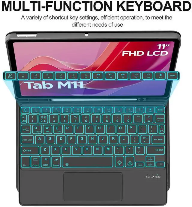 Touch Keyboard Case for Lenovo Tab M11 / K11 LTE 11 Inch 2024, 7-Color Backlit, Magnetic Detachable Wireless Keyboard, Folio PU Leather Case with Pencil Holder Auto Wake/Sleep, Multi-Angle Kickstand