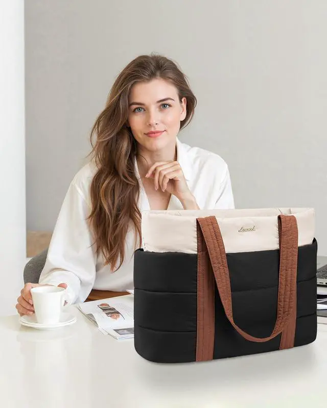 LOVEVOOK Tote Bag for Women, Large Puffer Work Tote Laptop Bag, Lightweight Travel Tote Bag with Zipper Gifts for Women
