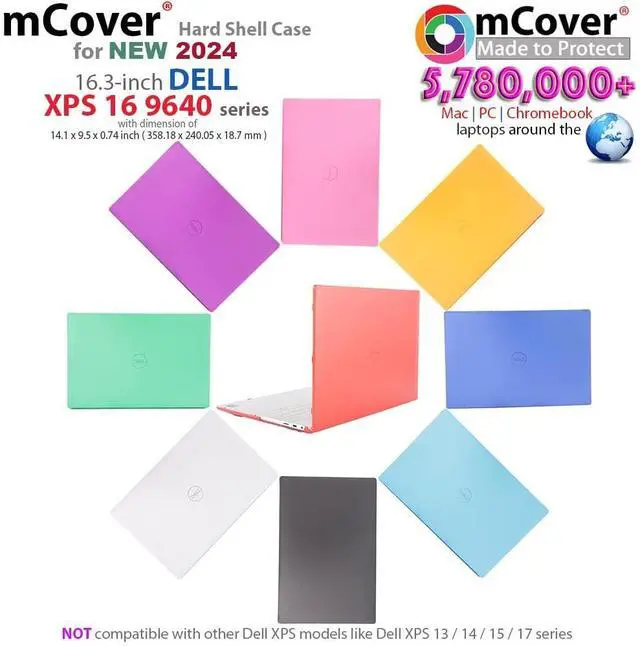 NOTE: Before placing order, PLEASE make sure to verify your laptop model number as this case is MODEL specific and NOT interchangeable. ^^ NOT fitting other Dell XPS 13 / 14 / 15 / 16 / 17 laptops. NOT compatible with ANY other Dell laptops as well. ^^ Made of high-quality translucent polycarbonate material which is shatter-proof and will protect your 2024 or later 16.3" Dell XPS 16 9640 series non-2-in-1 Windows Notebook Computers all around ^^ Designed to perfectly fit the 2024 or later 16.3" Dell XPS 16 9640 series Windows Notebook Computers with dimension of 14.1 x 9.5 x 0.74 inch ( 358.18 x 240.05 x 18.7 mm ) ^^ 2-piece light-weight ( 11.7 oz or 332 g ) shell easily snaps on and off.