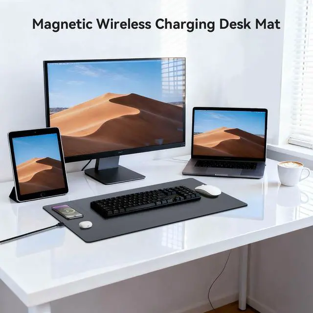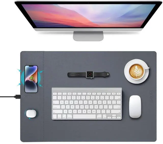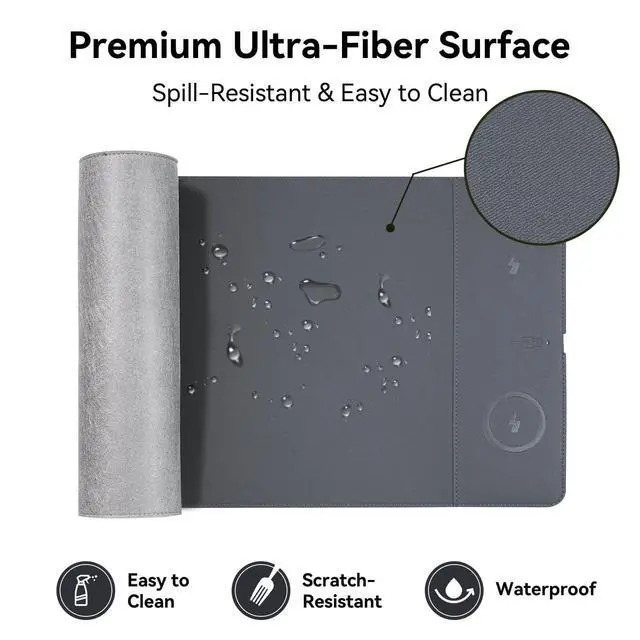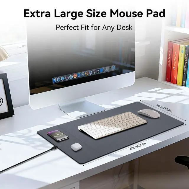 XL Size with 3-in-1 Functionality Hi-HONX XL large mousepad measures 23.4 inches 15.6 inches, the extra-large surface area easily accommodates your keyboard, mouse, and other desk items, making it perfect for both gaming and working. Combines three essential functions in one: wireless charging, mouse pad, and desk protection. This multi-functional design keeps your desk organized and clutter-free ^^ Up to 15W Fast Qi Wireless Charging Supports fast wireless charging up to 15W for a wide range of Qi-enabled devices, including Samsung Galaxy S series (15W), iPhone 16/15/14/13/12 series ( 7.5W ), and AirPods Pro (5W); Achieve faster charging speeds with a 9V 3A power adapter (not included in the package), ensuring your devices are powered up quickly and efficiently (The wireless charging function is not compatible with watches and over - ear headphones) ^^ Magnetic Design for Precise Charging The circular magnetic charging area, equipped with powerful built-in magnets, easily aligns the charging position, preventing the device from slipping during charging. It is compatible with iPhone, AirPods, and all Qi-enabled devices ^^ Super Smooth Surface Our wireless charging desk pad is crafted with premium microfiber leather fabric, offering a surface with an unparalleled smooth touch, enhancing the precision of your mouse control and elevating your user experience ^^ Easy To Clean and Protect Designed Awith a waterproof, anti-slip, and scratch-resistant surface, daily cleaning and maintenance become incredibly easy.