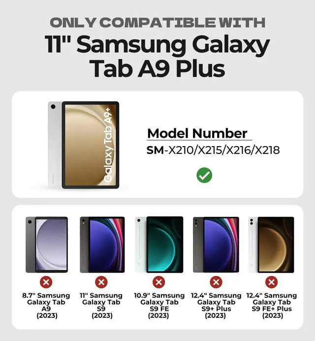 Note: NOT for Samsung Galaxy Tab A9/S9+ Plus/S9 FE+ Plus/S9 Ultra/S9/S9 FE. Please confirm your model before purchase! Tablet and Pen are NOT included! ^^ [Ultra-light & Ultra-portable Design] Designed for enhancing on-the-go productivity, the ultra slim and thin keyboard case for Samsung Galaxy Tab A9+ Plus combines powerful functionality with a travel-friendly design, weighing just 1.36 lbs.