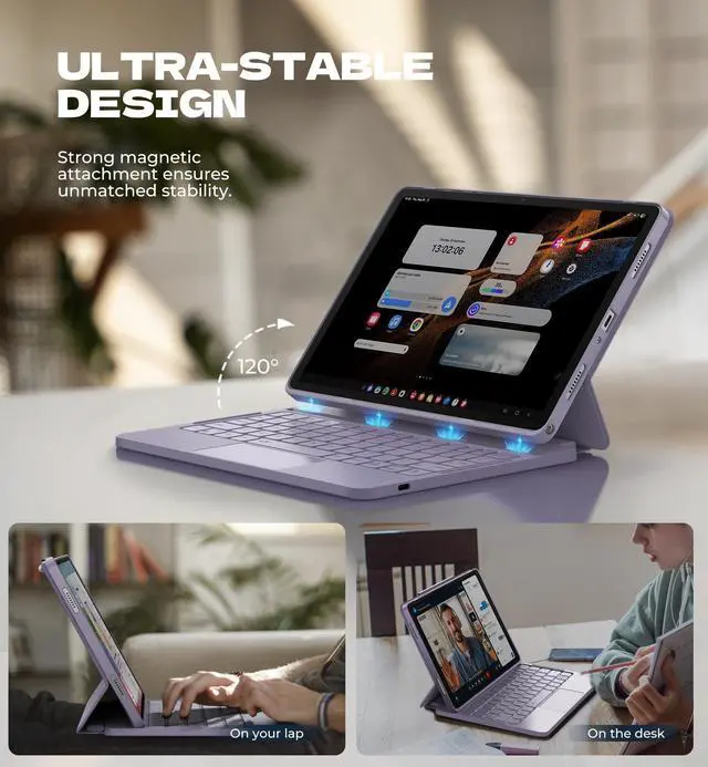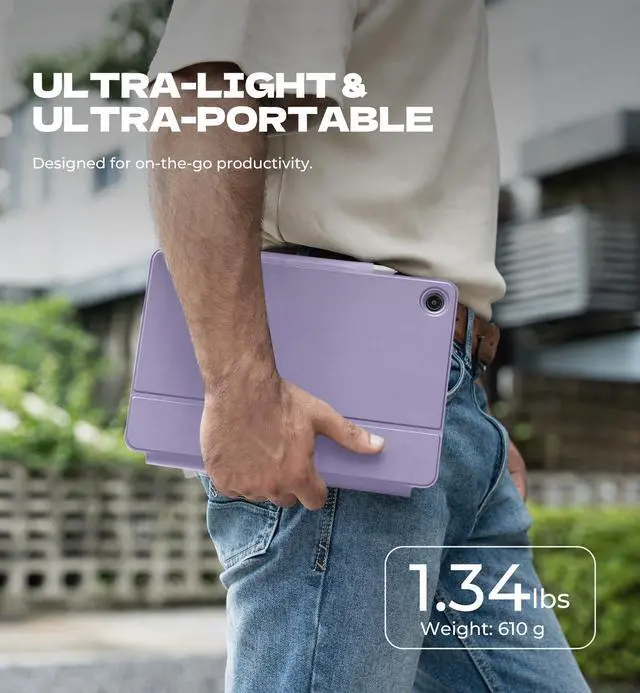 ^^ [All-around Protection] This portable keyboard case protects your tablet from drops, scratches, and daily wear and tear, while the built-in pencil holder keeps your stylus pen (NOT included) safe and easily accessible. When you're ready to go, just fold it up, and the magnetic clasp ensures it stays securely closed for easy carrying. ^^ [Laptop-like Typing] Type faster and more effortlessly with our perfectly spaced, responsive scissor-switch keys. The full row of shortcuts gives you instant access to the screen brightness, volume, and more, putting everything at your fingertips so you can get things done more efficiently without interruptions. ^^ [Upgraded Power-saving Design] Simply open the case to power on the keyboard and wake up your tablet; close it to turn everything off and let your tablet sleep - super smart and energy-efficient. The keyboard goes into sleep mode after 30 minutes of inactivity, and the backlight sleeps after 45 seconds of inactivity.
