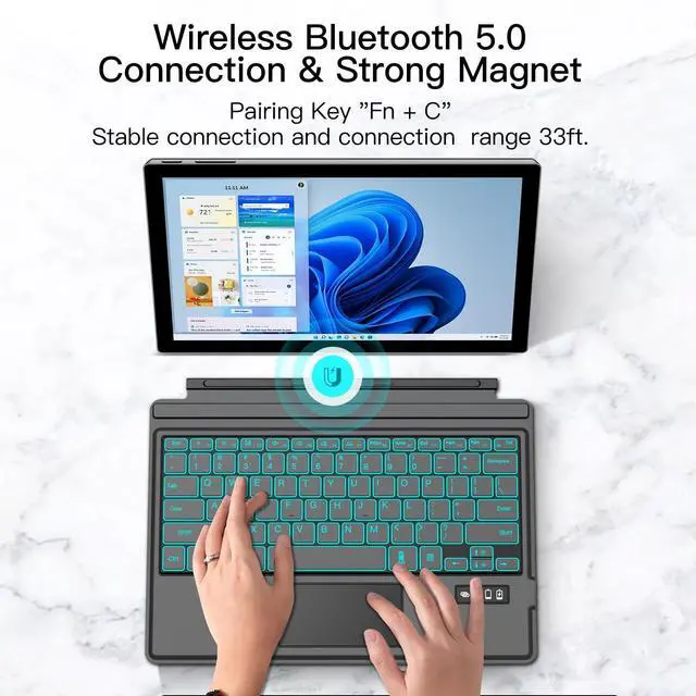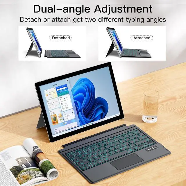 Adjustable Angle Placement: Keyboard for microsoft surface pro 7+/7/6/5/4/3 supports steady and high-speed bluetooth 5.0 connection, press and hold the Fn+C key for 3 seconds to enter the pairing state. Its signal connection range is up to 10m. Powerful magnetic attachment strip and nonslip keyboard back holds your Microsoft Surface Pro tablet steadily, detach or attach get 2 typing angles for more comfortable typing and viewing ^^