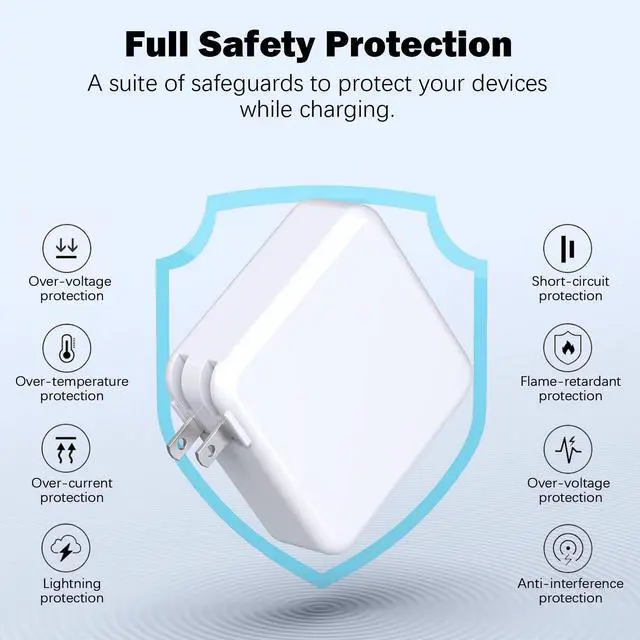 Wide Compatibility: Our charger is compatible with USB C port macbook pro & macbook air 16 15 14 13 inch, ipad pro & air and all type c devices. With the features of automatic identification and conversion of charging power according to your devices ^^ Safe and