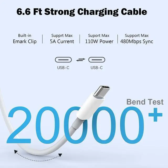 Durable: Each of chargers has built-in IC chip technology that provides protection from short-circuits and over-heating. The usb c cord passes BW-TC17 test and 20000+ times bending test. Ensure charging safety and provide a longer service life ^^