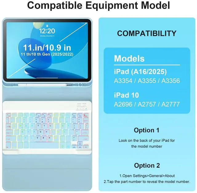 ^^ Compatibility: Only compatible with the 10th generation 10.9 -inch iPad (model: A2696/A2757/A2777) released in 2022 and the 2025 iPad (A16) (model: A3354/A3355/A3356). Not applicable to any other model. Before purchasing, please check the model on the back of the iPad that starts with "A" ^^