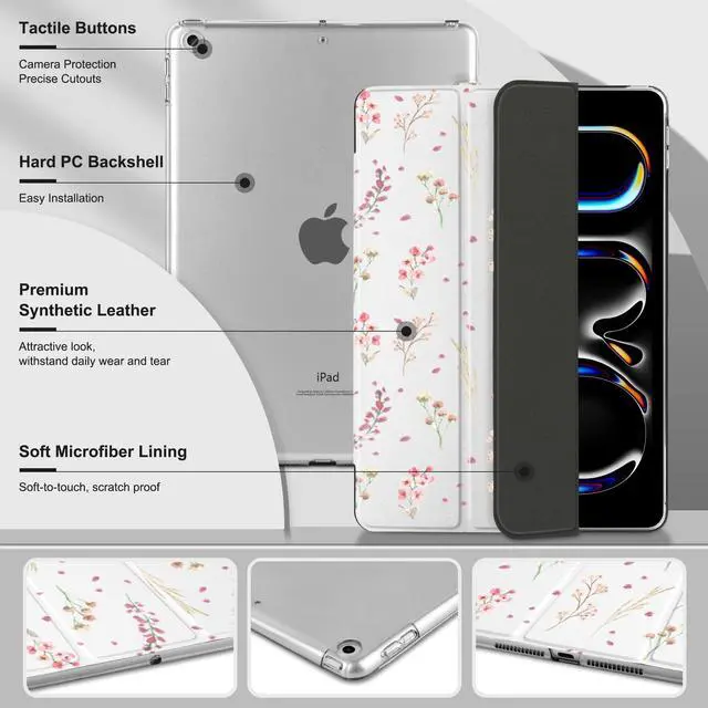 Specifically engineered for 10.2 -inch 2021 iPad 9th Generation (A2602/A2603/A2604/A2605), 2020 8th Generation (A2270/A2428/A2429/A2430), and 2019 7th Generation (A2197/A2200/A2198). Not compatible with other iPad models ^^ Magnetic protective cover automatically wakes iPad 10.2 when open and hibernates when closed to conserve power. Tri-fold stand provides the perfect viewing and typing angle ^^ The translucent frosted back cover lets you see the Apple icon in your favorite color, while the front cover combines a premium PU exterior, microfiber lining, and soft TPU for excellent scratch, impact, and drop protection to ensure long-lasting protection for the 10.2 -inch iPad ^^ Precise cutouts for all ports and buttons make it easy to access all the features of 10.2 iPad without having to remove the case too often.
