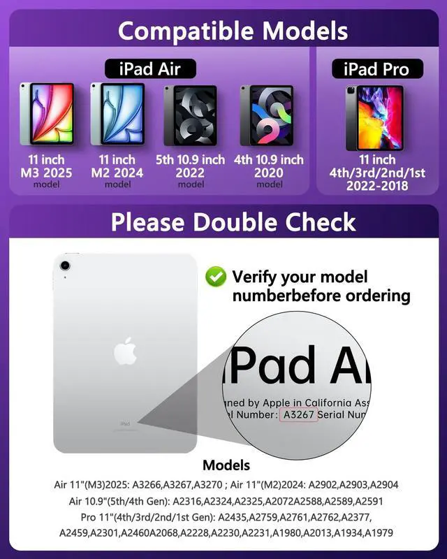 Wide Compatibility: Precisely designed for iPad Air 11 inch (M3/M2, 2025/2024 ) and iPad Pro 11 inch (4th/3rd/2nd/1th Gen) & iPad Air 10.9 inch 4th/5th Gen, models: A2759, A2435, A2761, A2759, A2435, A2761, A2316, A2324, A2325, A2072, A2377, A2459, A2301, A2460, A2068, A2228, A2230, A2231, A1980, A2013, A1934, and A1979 Generation. ^^ 7-Color