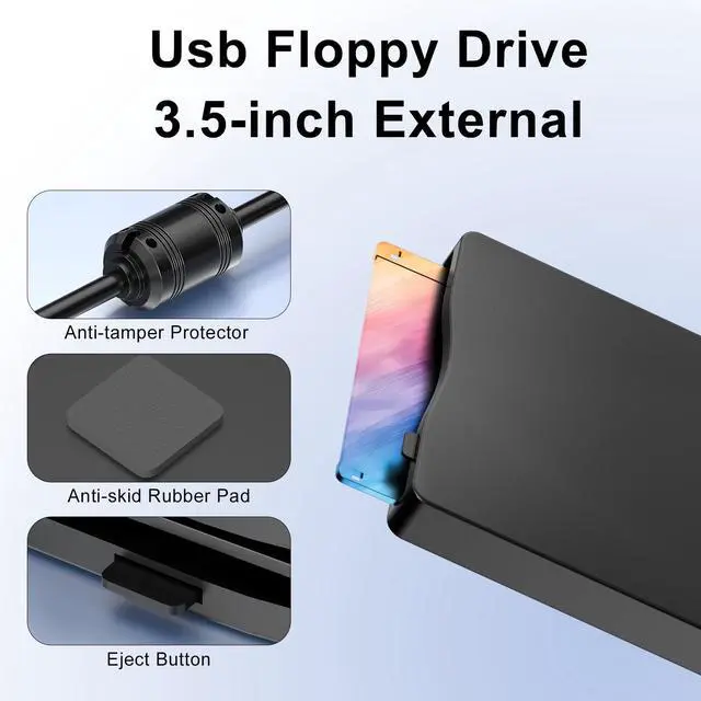 USB Floppy Disk Drive: This 3.5 -inch USB external floppy disk reader is designed to read 3.5 -inch floppy disks with a capacity of 1.44MB. It's a perfect solution for those who need to access old files stored on floppy disks but don't have an internal floppy disk drive ^^