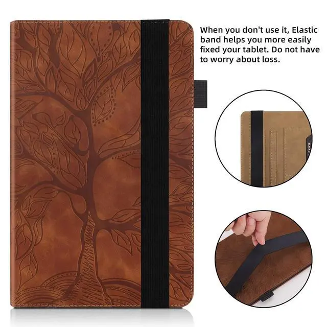 ^^ Special design: Two built-in pockets are designed to store credit cards, business cards, etc.; the pencil holder can perfectly hold the touch screen pen; the elastic band strengthens the closure of the tablet case to improve safety.