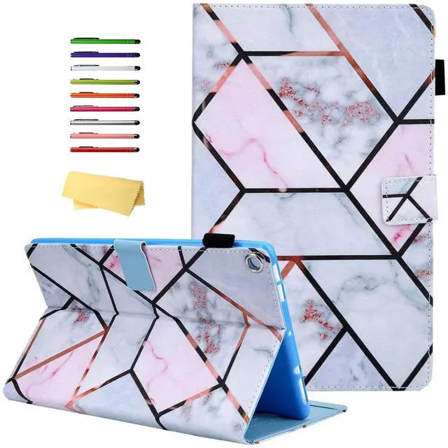 UUcovers for Kindle Fire HD 8 Tablet Case 8th/7th/6th Generation (2016/2017/2018 Release) with Stand/Pencil Holder/Pocket [Auto Wake/Sleep] Magnetic Smart PU Leather Cover, Pink Gray Marble