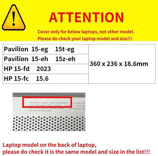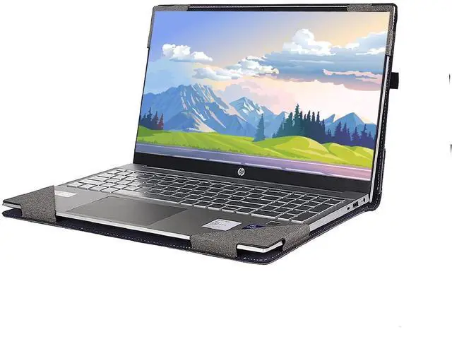 computer size: 360.2 mm x 234mm x 17.9 mm / 14.18" x 9.21" x 0.70". Compatible with HP Pavilion 15-eg 15.6 -inch notebook computers (eg: HP Pavilion 15t-eg000 / 15-eg0097nr / eg0069nr / eg0073cl / eg0053cl / eg0050wm / eg0021nr) or HP Pavilion 15-eh 15.6 -inch laptop (eg: HP Pavilion 15z-eh000 / 15-eh0095nr / 15-eh0010nr / 15-eh0097nr / eh0090wm / eh0050wm / eh0015cl) (other devices not included) [Warning]: This is not a universal protective cover and is not suitable for any other models [Material]: The outer layer is made of PU leather and microfiber material spliced together, and the inner layer is made of real microfiber material.