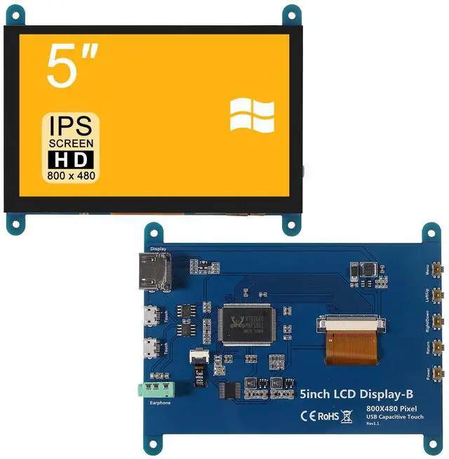 5 inch resistive touch screen designed for Raspberry Pi 3 2 Model B RPi 1 B B+ A A+, can't work for Raspberry Pi Zero board.