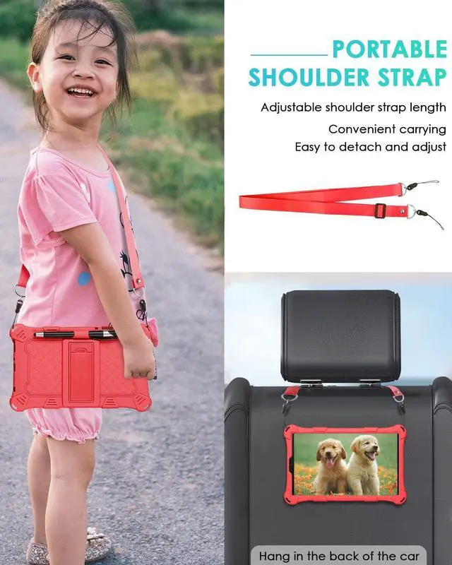Shoulder Strap: The shoulder strap is very convenient for carrying your tablet. Perfect for traveling, restaurant ordering, engineer outdoor operation, teacher, etc. You can also hang the tablet on the back seat of the car ^^