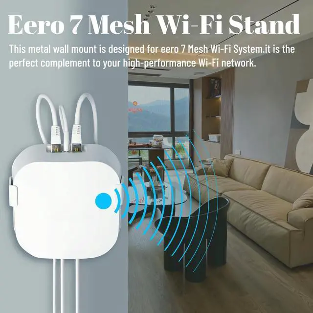 This metal wall mount is designed for eero 7 Mesh Wi-Fi System. it is the perfect complement to your high-performance Wi-Fi network. ^^ The wall mount is made of 2.0 mm metal sheet with surface treatment. The sturdy construction ensures stability and durability which ensure your device securely attached and reliable and stable connection. ^^ Special bending design on the mount back, which improving the airflow of the device, also leave enough spaces for your net cable and power plug wire going through. Cable Management would hide the wires neatly and orgonized.